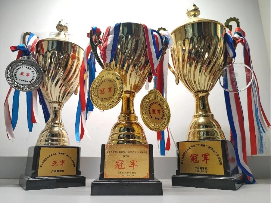 赛场上,双方队员们奋力拼搏,奔跑如离弦之箭,经院男足面对强敌的步步紧逼,经院队员也丝毫不畏惧,努力调整节奏寻找突破口,绝不放过一丝的进攻机会。我方守门员一个飞扑将球拦下,步步为营,进可以攻,退可以守。在第55分钟,经院男足终于获得角球机会,在各位队员们尽力拼搏的情况下,我院获得绝佳破门机会,一脚射门,勇获一分!临近比赛结束阶段,经院男足乘胜追击,两次头球破门而入,比分3:0!广商足球场上,球员们奔跑如离弦之箭,观众席上,同学们助威呐喊声振奋人心,青春的活力在足球场上迸发。“哔——”随着一声长哨,广州商学院“希望杯”七人足球赛圆满结束,经院男足最终以3:0的佳绩获得了此次联赛的冠军。