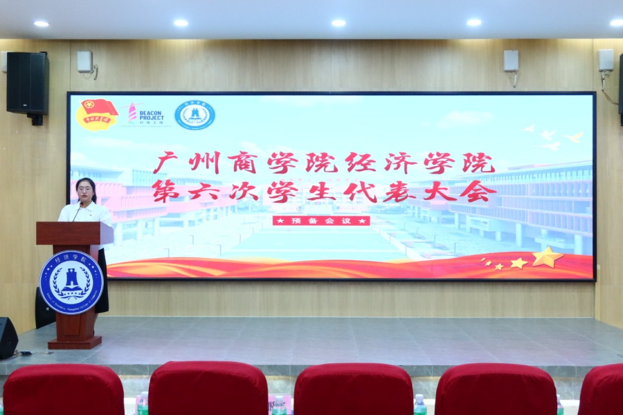 为充分激发青年学生的活力与潜能,确保快速精准响应学生需求,广州商学院经济学院于2024年9月6日在第二报告厅顺利举行第六次学生代表大会。经济学院党总支书记张雪梅、全体辅导员、第五届学生会主席团以及各年级学生代表参会。大会由学生会秘书长胡丹欣主持。