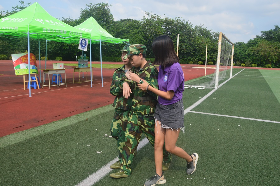 为了让18级新生在军训期间享受到更好的照顾,让他们能够从新的环境中感受到家的温暖,团学干部轮流值班,以帮助学生、老师为己任,尽最大的可能给予帮助。在新生军训期间,每天都有值班的干部早早驻扎在大本营,确保新生和教官军训用水的供给,每天都会有专人把桶装水运到广商排球场;团学干部还会准备好葡萄糖和盐,及时地为新生提供基本的能量和盐分补给;除此之外,还会准备好医药箱,随时准备好为同学们服务,同时对于生病受伤的新生,团学干部还会现场给予照顾,让新生感受到金融学院对于他们的关爱。他们默默无闻,他们无私奉献,他们就是——紫衣人。